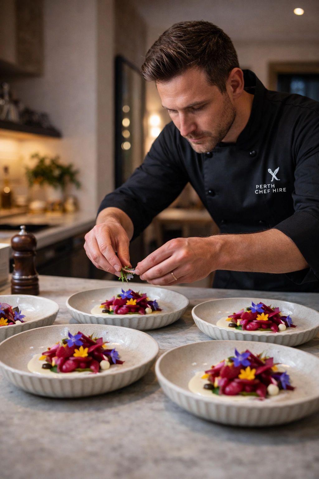 Perth Chef Hire delivers restaurant-quality private dining experiences in homes, holiday stays, and event venues across Mandurah. We create thoughtful, chef-led menus for clients who want more than standard catering — from elegant plated dinners and shared feasts to refined canapé receptions and intimate wedding celebrations.